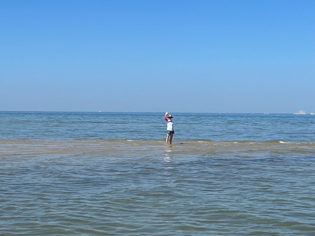 The dogs had their first romp in the ocean and loved it. Then later an older lady, a local who “grew up around these parts,” corrected us that this was not the ocean, this was the Bay…so I will amend my earlier comment that the dogs had their first romp in salt water in the bay 😜 This makes sense actually, because the bay is the end of the road for the Mississippi River and it dumps all its water and silt here into the Gulf of Mexico. The mix of fresh and salt water makes the water less clear than the Caribbean. Despite that, it’s still fun to play in.