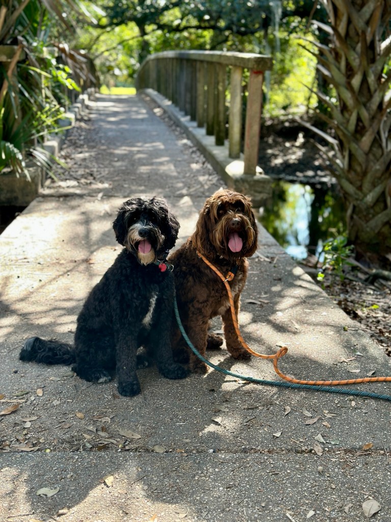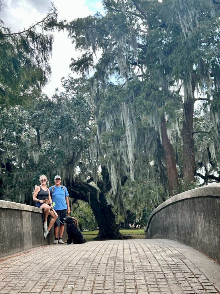 We look for opportunities to get the dogs out. They often are asked to wait patiently for us while we are exploring. The puppy field trip this morning was to the New Orleans City Park. Two times the size of New York’s Central Park, it was impressive. We walked 5 miles and didn’t scratch the surface of all there was to see. The Park has 24 miles of walking trails, 2 horse stables, and 2 golf courses. It also features a tennis club, the New Orleans Museum of Art (NOMA), a Sculpture Gardens, and the Louisiana Children’s Museum.
