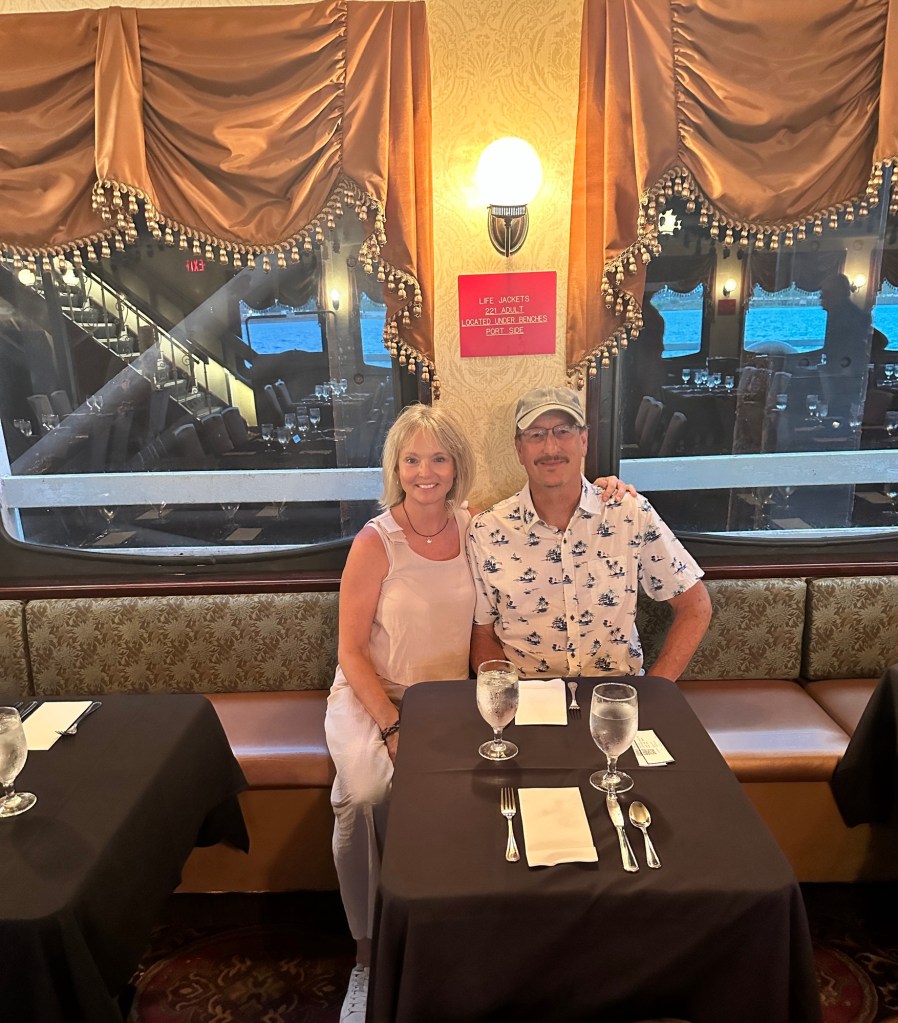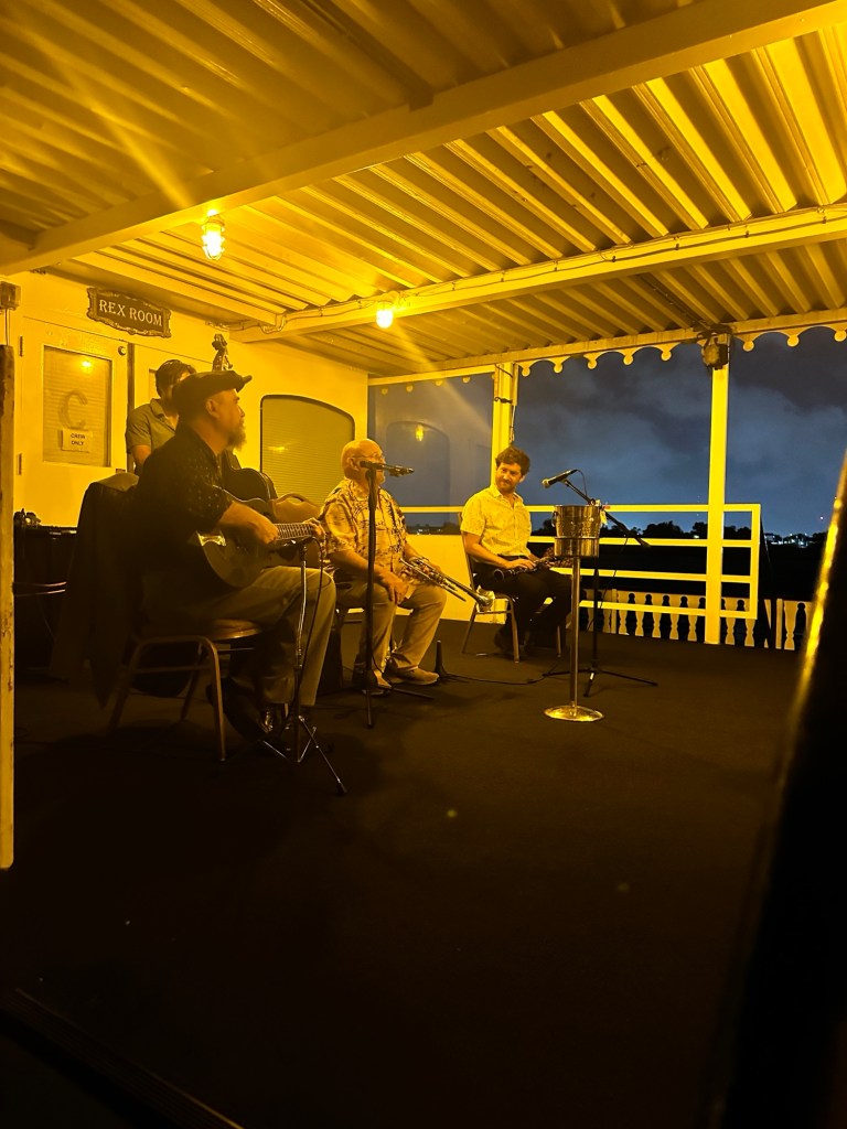 We were so excited for our evening excursion~ a jazz, dinner cruise down the Mississippi River on the Creole Queen.