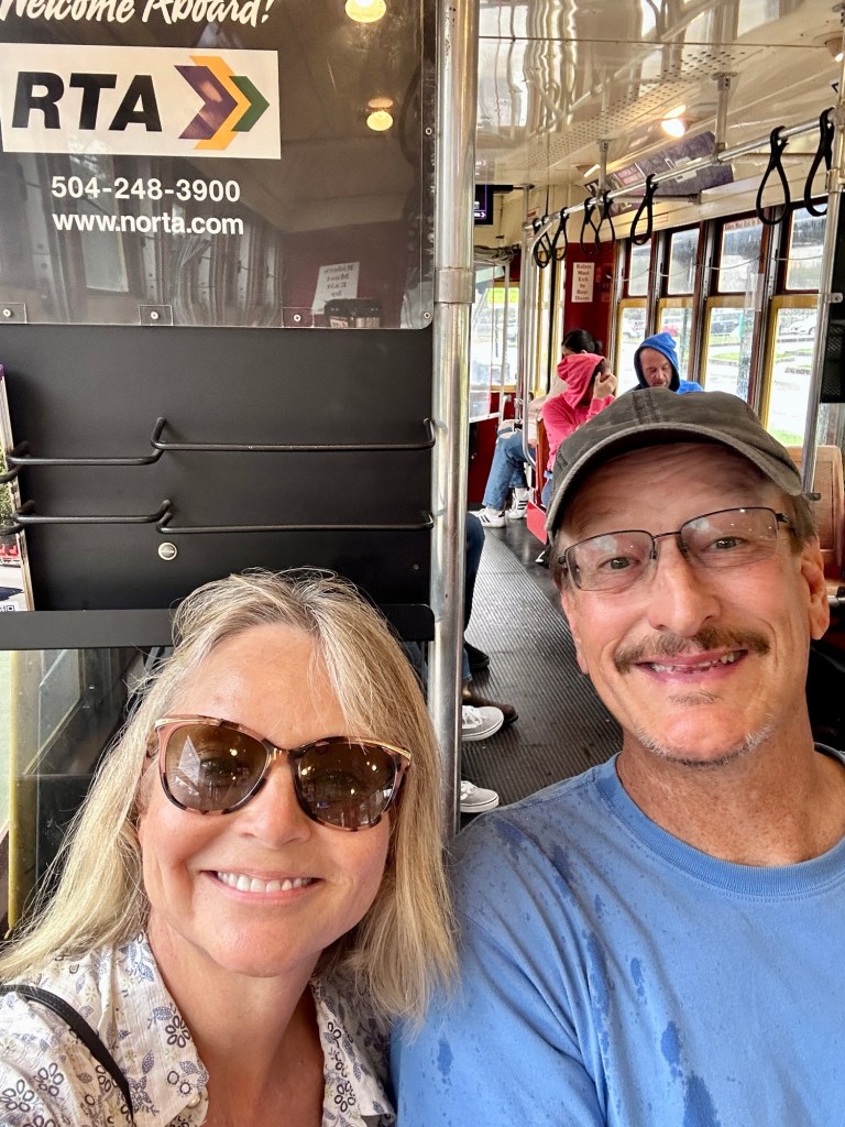 At Bourbon and Canal Street hop off the red street car and onto the green to the Garden District. The trip would have taken us 10 min to drive but over an hour on the street cars. But that’s the fun of it!