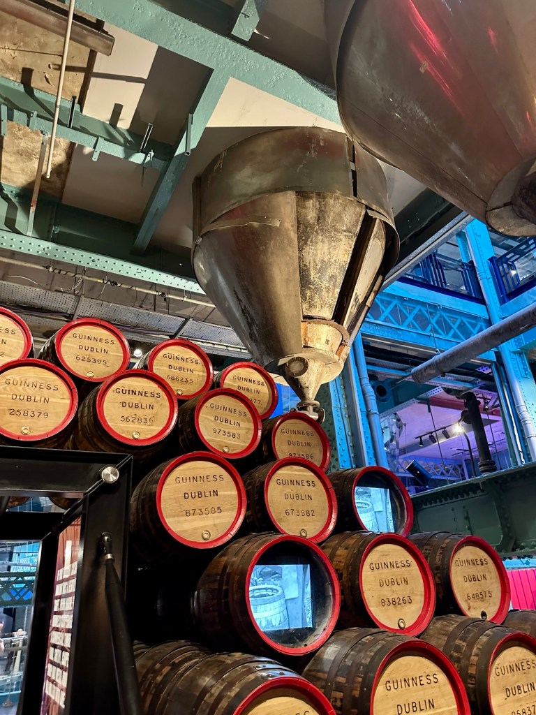After spending the day getting our bearings in Dublin, we headed to the Storehouse for our 5 p.m. reservation. The Guinness Storehouse is Ireland’s most-visited tourist attraction, housed inside a converted fermentation plant that dates back to 1904. The building itself is shaped like a giant pint glass and could hold roughly 14.3 million pints of Guinness if it were full!