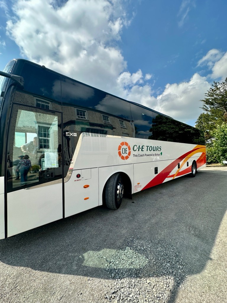 Monday morning, bright and early, we boarded the coach bus with our group of 30 and set out for the countryside of southern Ireland. The coach was quite comfortable, and CIE Tours has a thoughtful rotating seat system that ensures everyone gets a chance to sit up front and enjoy the beautiful views along the way.