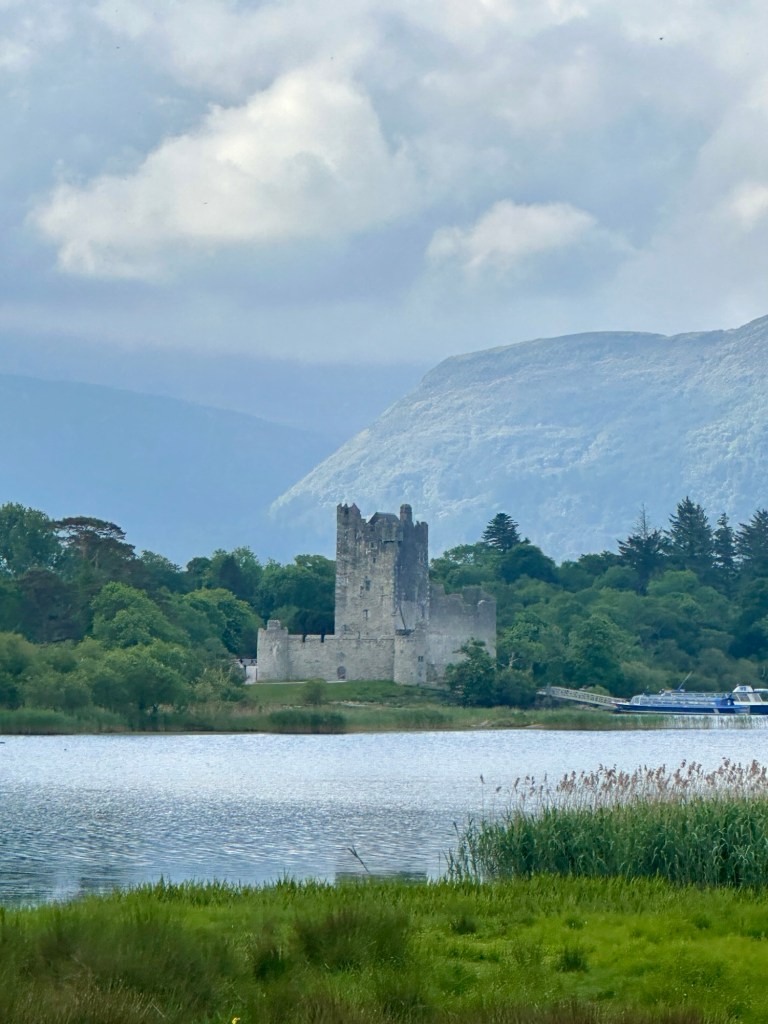 Our destination was Ross Castle, a striking 15th-century fortress built around 1410 by the O’Donoghue clan. The castle sits right on the edge of the lake, and legend has it that O’Donoghue himself still sleeps beneath the waters, occasionally rising on his white horse to circle the lake at sunrise. The castle’s sturdy stone towers and thick walls offer a glimpse into medieval Ireland — and it’s easy to imagine knights, clans, and battles from centuries long past.