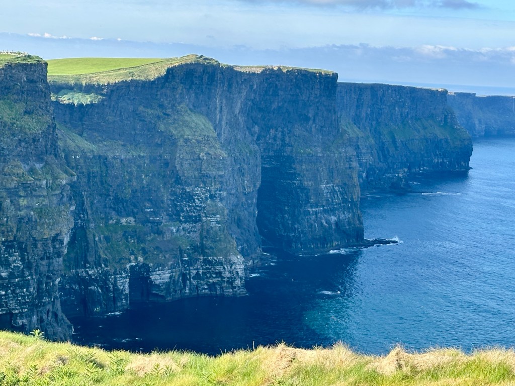 We had been warned that the cliffs are often rainy, windy, and chilly — but we were blessed with a perfect weather day, blue skies and gentle breezes that allowed us to fully appreciate the magnitude and majesty of this incredible place.