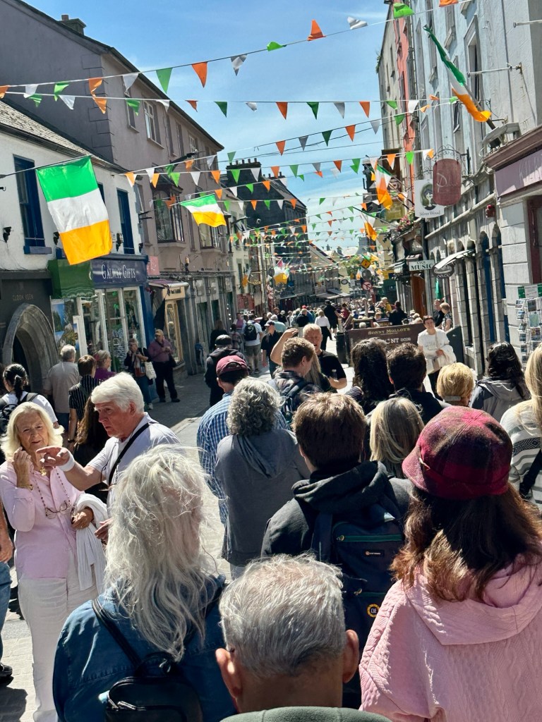 After visiting the cliffs, we made our way to the lively city of Galway for a walking tour and lunch. Situated along Ireland’s western coast, where the River Corrib meets the Atlantic, Galway is often called the “Cultural Heart of Ireland.” The city traces its roots back more than 800 years, founded around 1232 when a fort was built by the Anglo-Norman de Burgo family. Over the centuries, it evolved into a thriving port and trading hub — and today, it’s famous for its festivals, music, and arts scene.