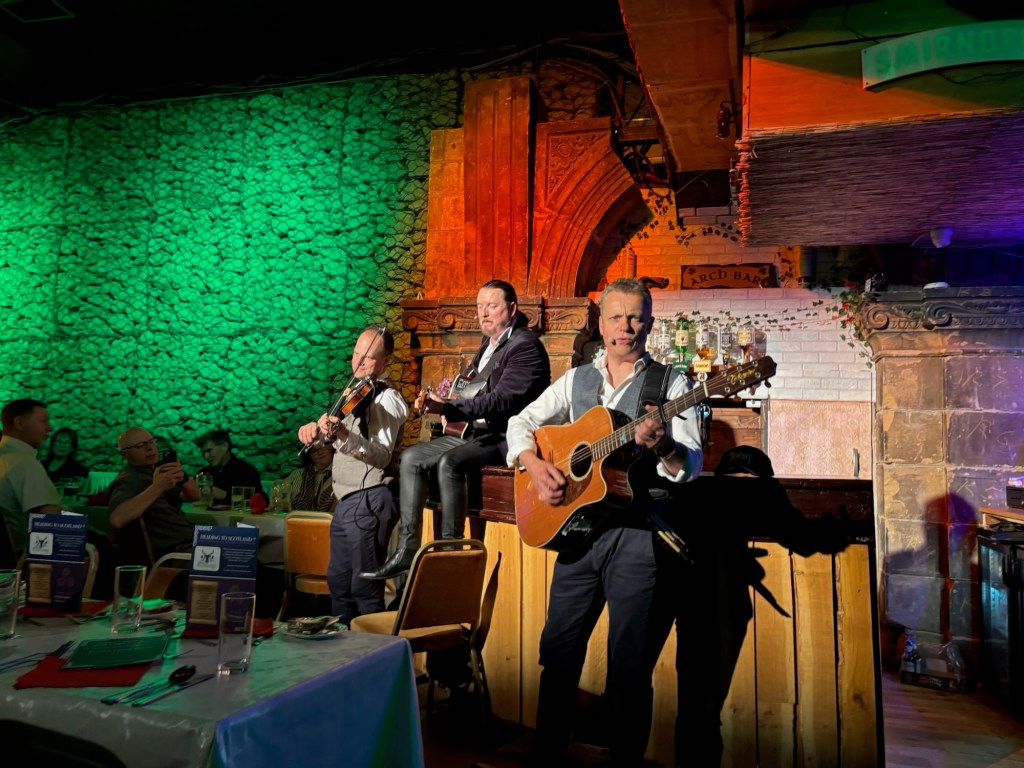 Dinner was hearty and comforting — a bowl of traditional Irish stew (made with lamb and root vegetables) and Irish coffee. As we ate, we were treated to a beautiful harp performance followed by lively clog dancing. The music, storytelling and sense of tradition made it one of the most memorable evenings of the trip — a true taste of Ireland, in every sense.