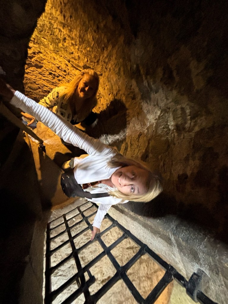 It’s no easy feat, though! To reach the stone, visitors must lie on their backs and lean backward over an open gap in the castle wall, while attendants hold you safely in place. It’s a mix of nerves, laughter, and a touch of bravery — but absolutely worth the experience.