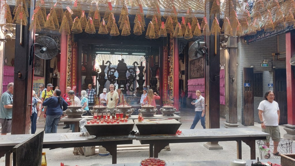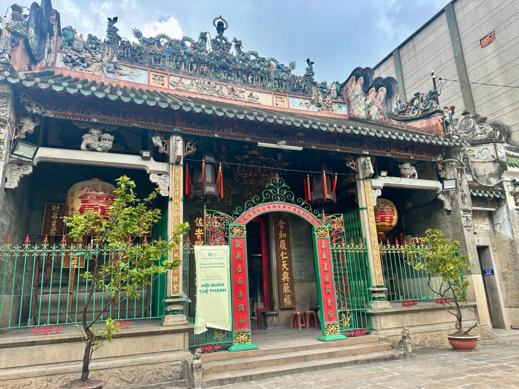 We continued on to Chợ Lớn, Saigon’s bustling Chinatown, and visited the historic Thiên Hậu Temple, built in the 1760s and dedicated to the Goddess of the Sea. Inside, incense filled the air as locals prayed for safe journeys and good fortune—a peaceful contrast to the traffic roaring just outside the temple walls.