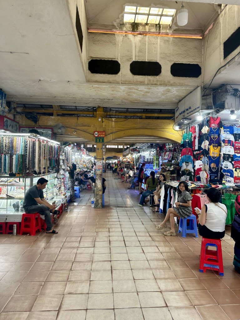 Our first day was spent exploring Saigon on our own. We didn’t wander far from the hotel—maybe a 20-minute radius—but this city is so dense with energy and life that we experienced a lot within just a few blocks. One of our first stops was Cua Bac Market, an indoor market housed inside a massive building that seems to span an entire city block. Inside, rows of tightly packed stalls sell everything from name-brand shoes, bags, and shirts to classic tourist-trap souvenirs.