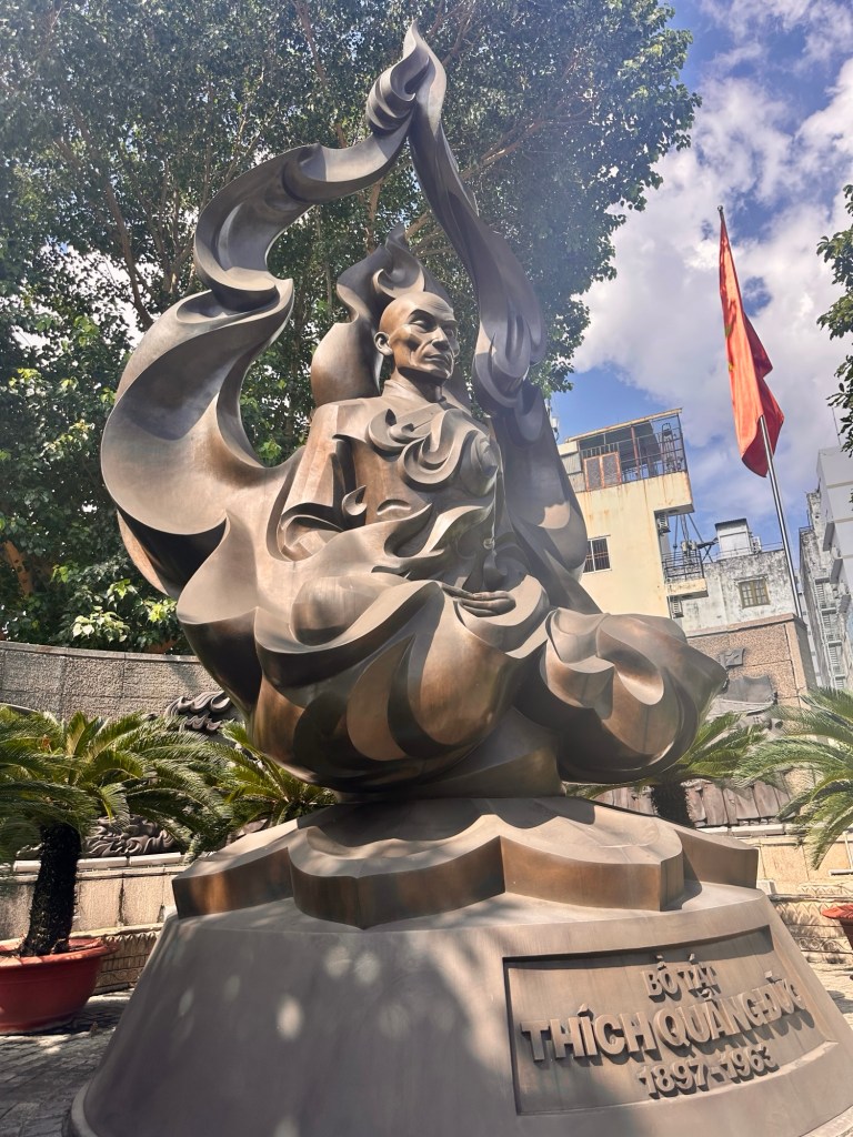From there, we rode to the Thích Quảng Đức Memorial, a quiet yet deeply moving site marking where a Buddhist monk self-immolated in 1963 to protest religious persecution by the South Vietnamese government. Our guides shared the story with reverence, giving us space to absorb the weight of the moment. It’s one of those places that brings history sharply into focus and stays with you long after you leave.