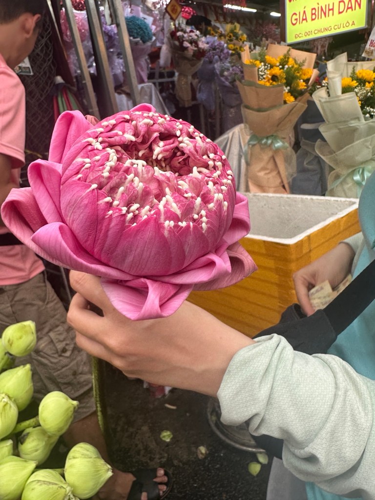 Our final stop was the Ho Thi Ky Flower Market, a lively street market bursting with color. Vendors sold fresh flowers by the armful alongside street snacks like grilled meats and crisp rice paper treats. We paused at a local food stall to sip fresh coconut water and snack on banana rice paper, taking a brief break from the sensory overload—in the best possible way. The market was fragrant, loud, chaotic, and utterly alive.