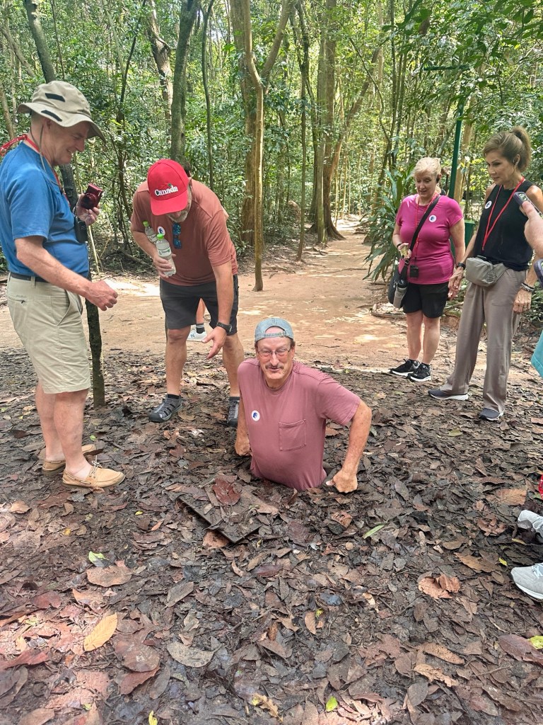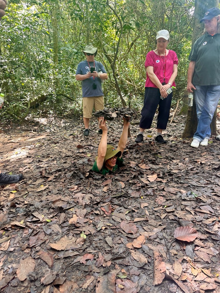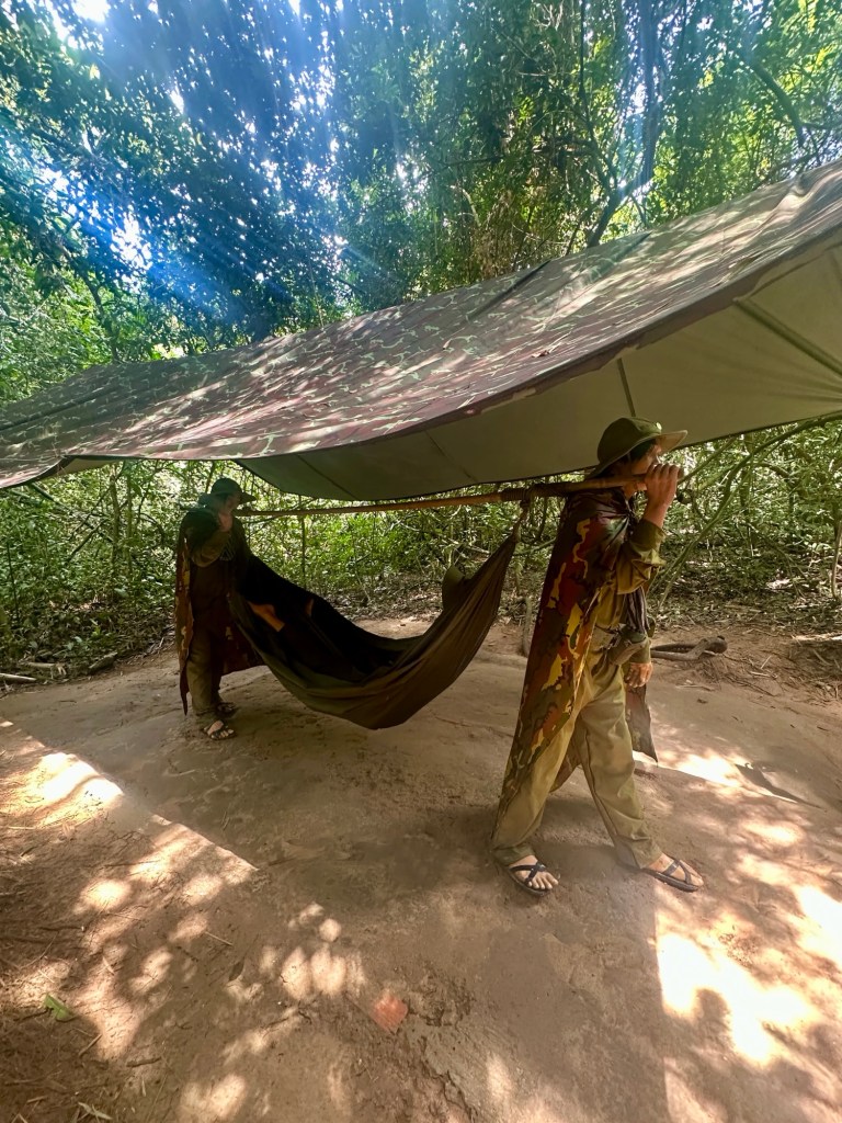 One of the most striking demonstrations was watching our guide show how a Viet Cong soldier could disappear almost instantly into a tunnel entrance barely large enough for a person to fit through. In seconds, the opening was concealed, leaving no visible trace. It was a powerful reminder of how the tunnels functioned not just as shelter, but as a strategic advantage.