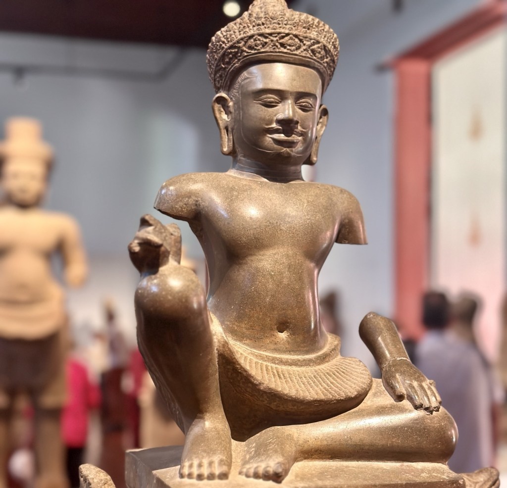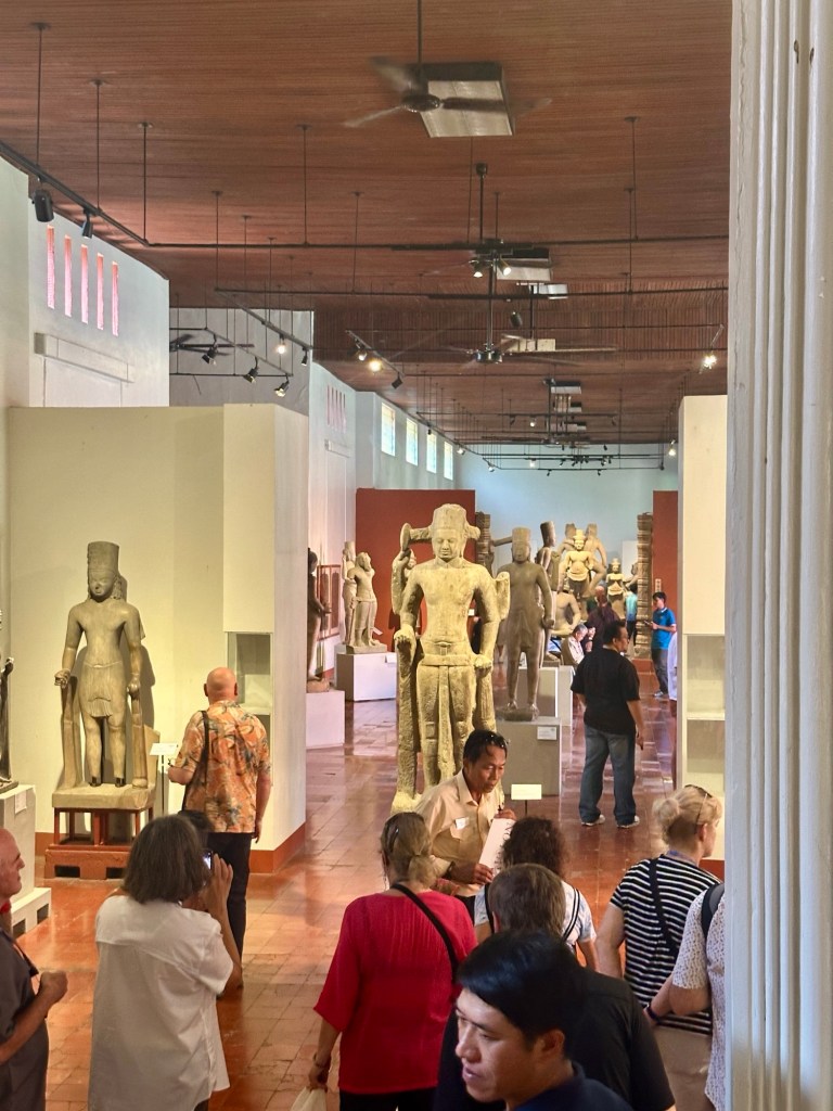 Following our palace visit, the cyclo ride continued to the Cambodian National Museum. The museum’s collection is primarily composed of Buddha and Vishnu statues, offering a fascinating look at the evolution of Khmer art across centuries. As you move through the galleries, you can clearly see changes in facial expressions, posture, and craftsmanship—reflecting shifts in religious influence, artistic style, and cultural priorities over time. Figures such as Garuda, the mythical half-man, half-bird protector deity, appear throughout the exhibits, highlighting the deep connections between Hindu and Buddhist traditions in Cambodia’s history.