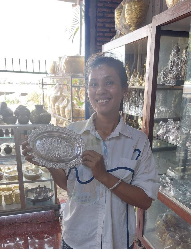 Inside small workshops, skilled artisans meticulously hammered scenes into silver plates entirely by hand. Each piece reflected hours of careful labor—landscapes, village life, and cultural symbols slowly emerging. Watching the process was a powerful reminder of the patience and pride behind Cambodia’s handcraft traditions.