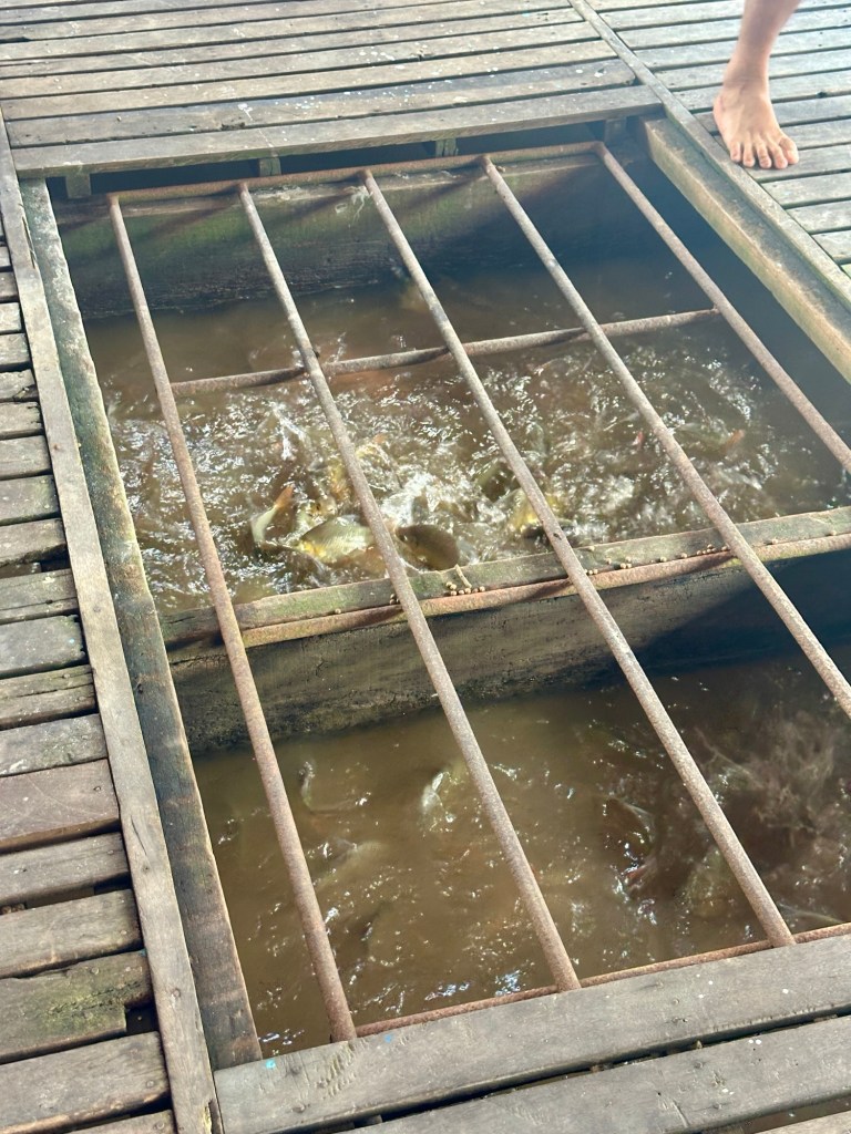 Before returning to the ship, the sampan made one final stop at a floating fish farm. Here, we learned about the local aquaculture industry, including the farming of catfish and pomfret fish for market—another example of how closely life in the Mekong Delta is tied to the river.