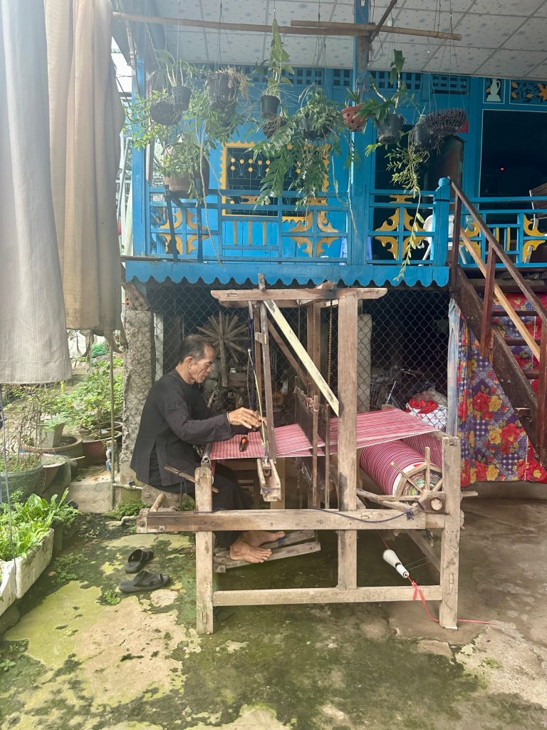 As we made our way through the village, we arrived at the home of a family of third-generation weavers. This village has been known for weaving for hundreds of years, though the artisans transitioned from silk to cotton when they could no longer compete with large-scale production from China. Throughout the Mekong Delta, each village—or even each family—tends to focus on producing or selling a single specialty. These skills are passed down through generations, preserving both tradition and livelihood.