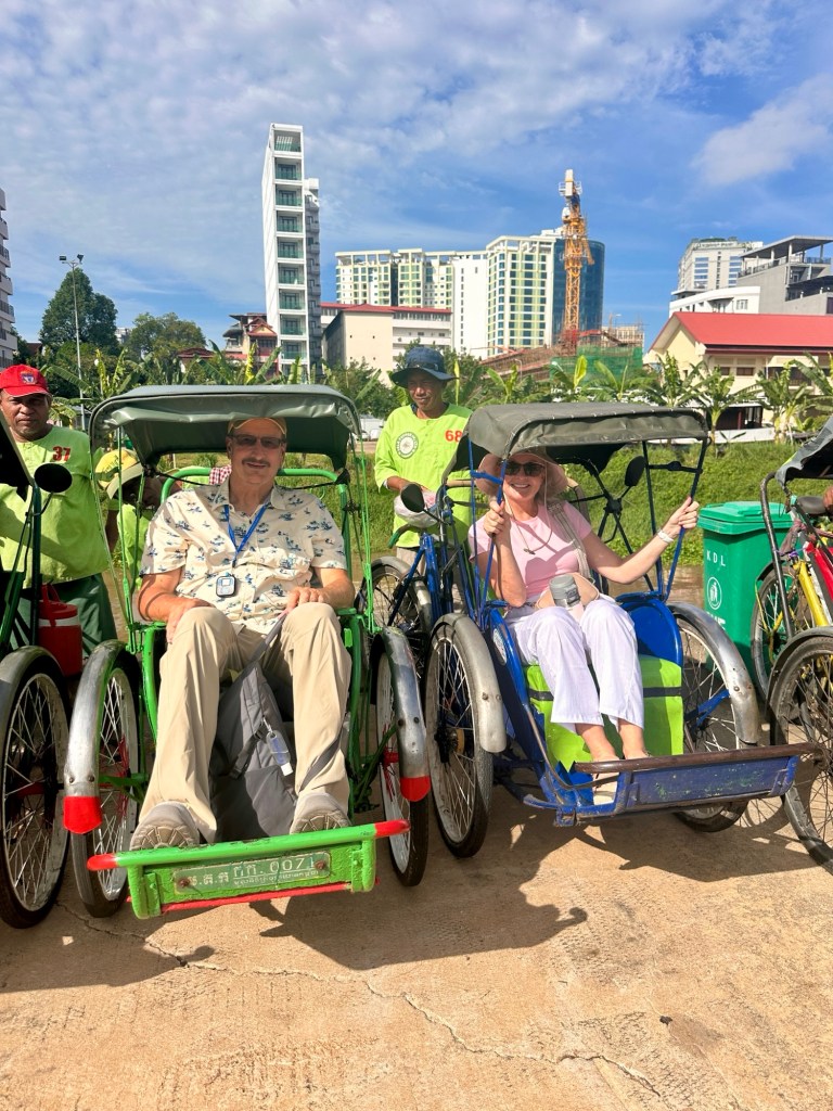 After breakfast, we ventured into Phnom Penh by cyclo—individual rickshaws pedaled by bicycle—for a scenic and relaxed ride through the city to the Royal Palace.