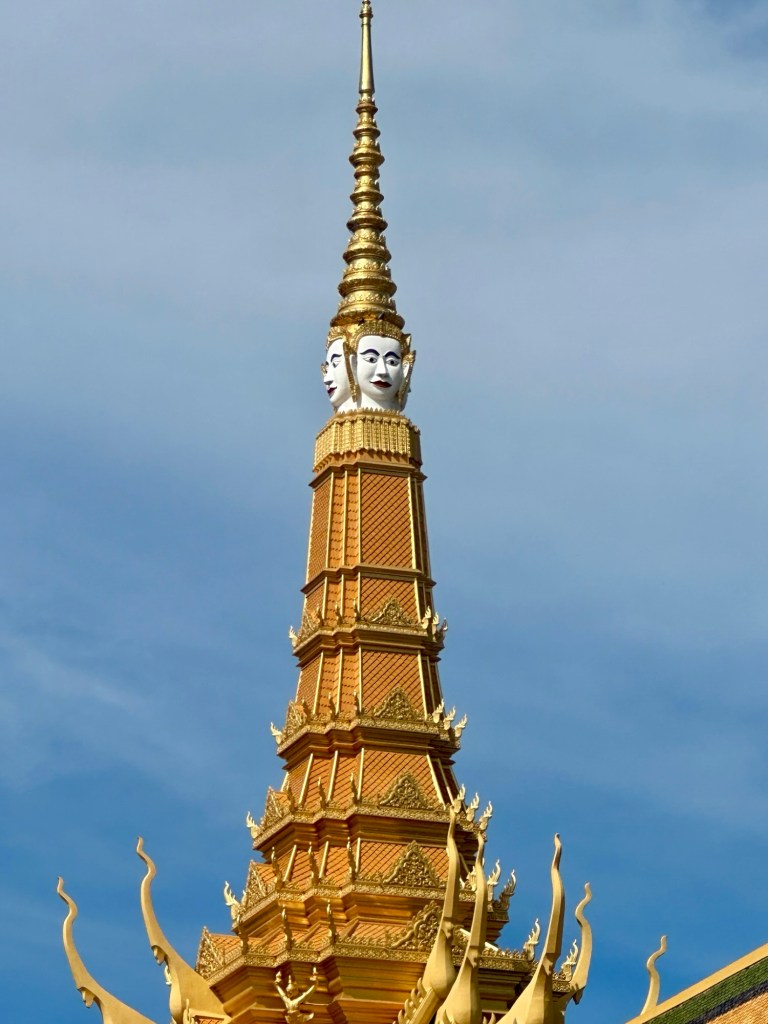 Built between 1917 and 1920, the Royal Palace marked the relocation of Cambodia’s king and royal residence to Phnom Penh from Angkor. The palace complex is an elegant blend of traditional Khmer and French colonial design. Atop the palace spire are four faces representing the king and symbolizing the four elements. Photography is not permitted inside the palace grounds, preserving the sanctity of the space.