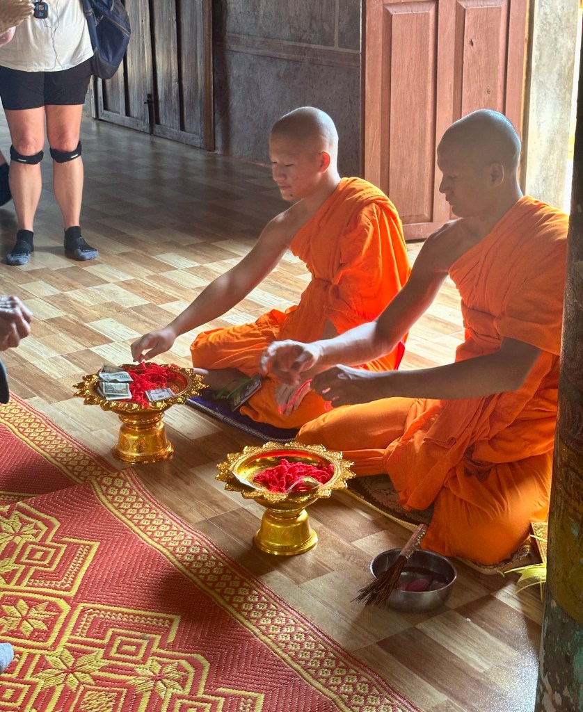 At the temple, we received a blessing from the monks—an experience that lasted about six minutes and felt both grounding and deeply meaningful. We also learned about the daily life of a monk. Novice monks can begin their training as young as nine years old, and becoming a monk is considered a great honor. Many Cambodian rulers and kings traditionally spent two to three years as monks before assuming leadership, a practice rooted in humility, discipline, and spiritual study.