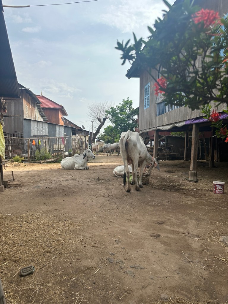 From there, we climbed aboard ox carts for a gentle ride through the countryside near Kampong Tralach. The pace was unhurried, allowing us to fully take in the surrounding rice fields, palm trees, and everyday rural life. Along the way, we stopped to meet a local farmer who shared insight into his daily routines and connection to the land.