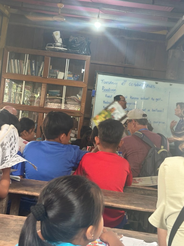 We arrived during their English-learning class, and the visit was immediately filled with smiles and nervous excitement. Each of us was paired with two children, all under the age of nine, who proudly practiced reading English aloud from their primary school books. The children also read together as a group, confidently demonstrating how much they’ve learned.